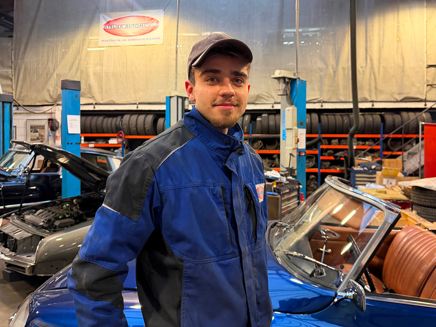 Herr Berthebaud lebt in Berlin-Wedding. Er ist in Saint-Nazaire an der Mündung der Loire geboren und hat in Besançon und Karlsruhe Maschinenbau mit dem Schwerpunkt Fahrzeugtechnik studiert. Er hat sich im IFP (Institut français du pétrole) in Rueil-Malmaison als Motoren- und Getriebeentwickler weitergebildet. 2021 war er für drei Monate bei Pur Sang in Argentinien, um das Schweißen von Aluminium-Karosserien zu lernen. Pur Sang hat sich seit Jahrzehnten darauf spezialisiert Vorkriegsmodelle von Bugatti zu restaurieren. Seit ein paar Jahren gibt er Seminare für Kfz-Mechatroniker und Mechatronikerinnen für Motoreinstellungen von Vergasermotoren oder Motoren mit Bosch K/D und L-Jetronic Einspritzanlagen. 2021 hat er für Vectura System aus Nates eine Filiale in Hamburg aufgebaut und ist mit dieser 2025 nach Berlin umgezogen. Vectura System berät Firmen in Sachen effizienter Transport-Logistik, also z.B. für was und ab wann lohnt sich der Umstieg auf elektrisch betriebene Fahrzeuge. Sein Herz schlägt aber trotzdem für Oldtimer und da wir Herrn Berthebaud seit fast zehn Jahren kennen und er jetzt in Berlin lebt, hat er sich entschlossen, 20 Stunden die Woche für uns zu arbeiten. Schon in seinen ersten Tagen konnte er den Motorlauf zweier Peugeot eindrucksvoll verbessern und auch beim Wiederaufbau eines Citroën SM Motors sowie des Erneuerns dessen Kabelbaums leistet er wertvolle Arbeit. Privat fährt er Citroën Dyane und CX.
