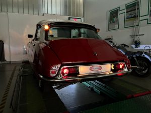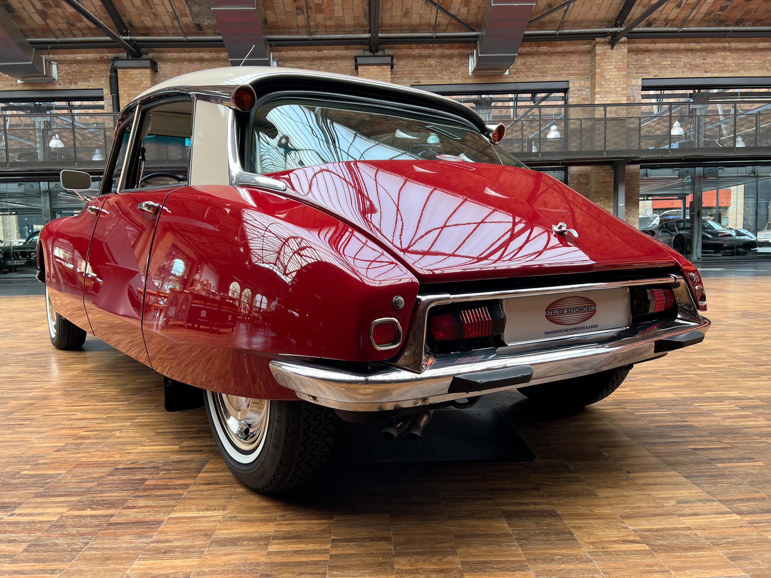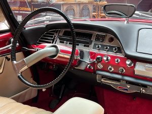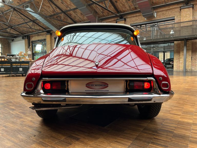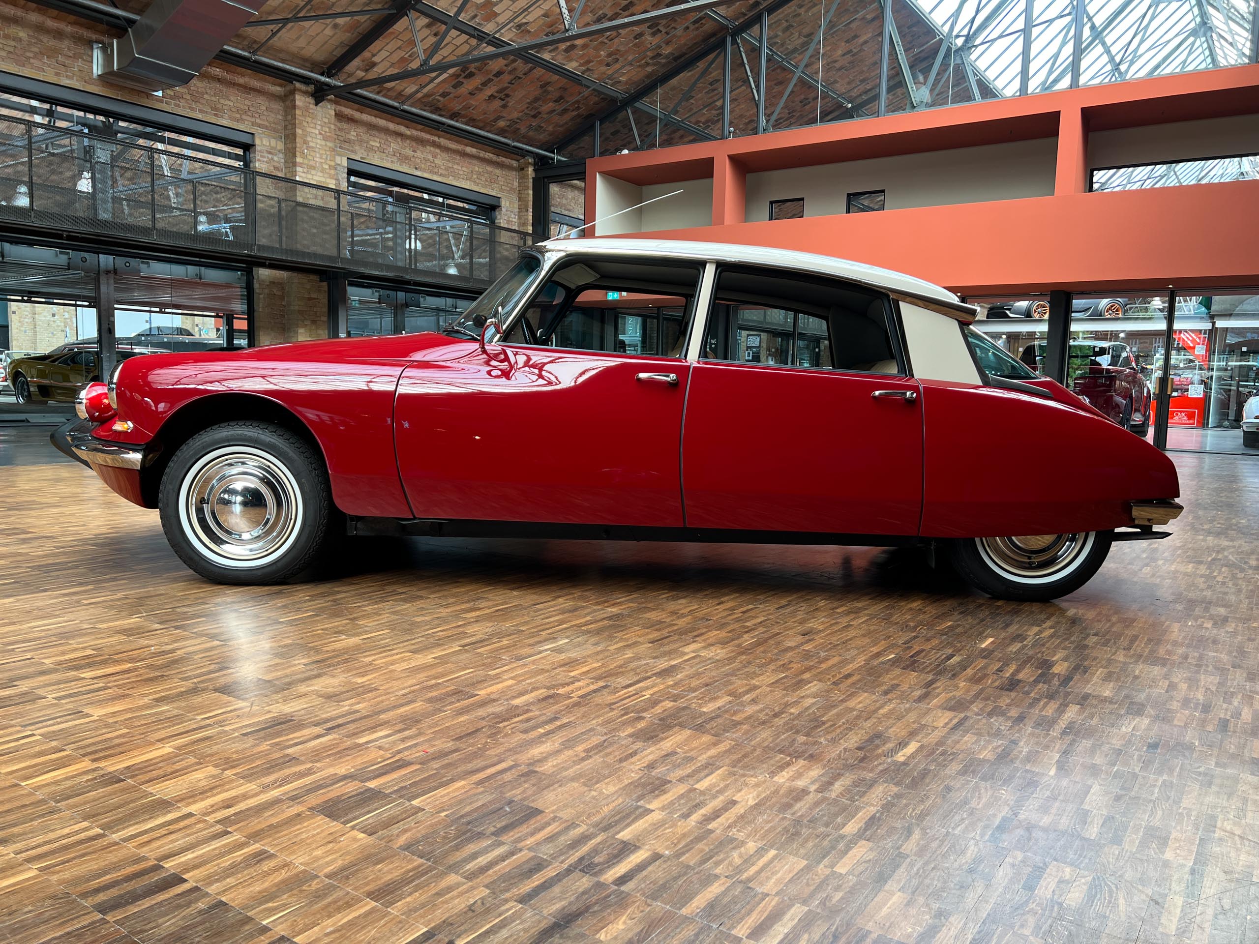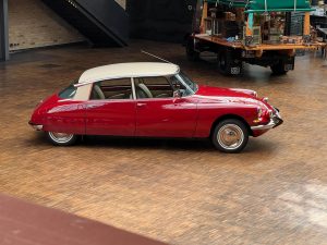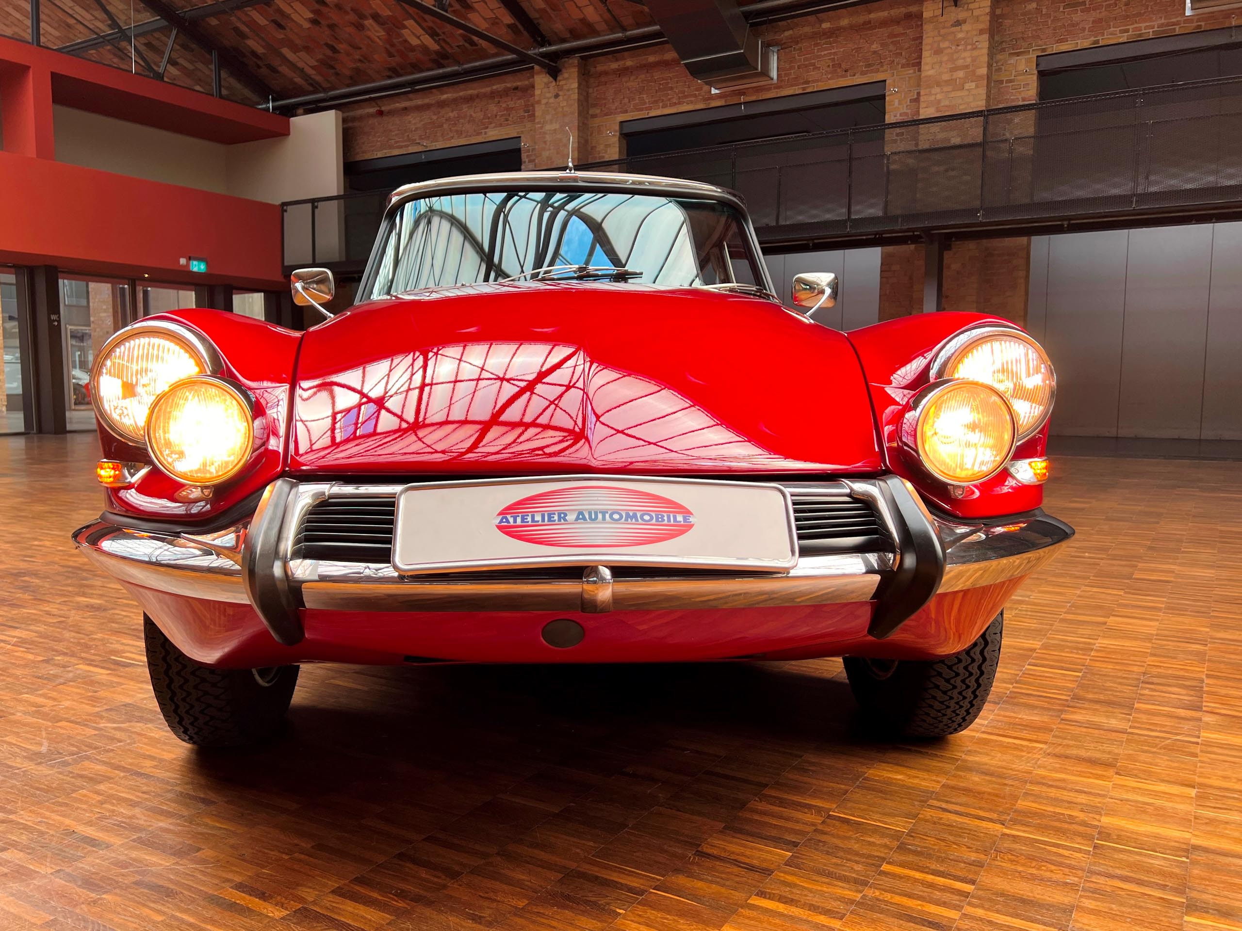 This vehicle was restored from the ground up for a customer in 2015 and rebuilt according to his wishes. His dream car was an ID with a front end from 1967, a dashboard from a DS from 1967, the exterior color Rouge Massena AC 423, a roof color Blanc Albâtre AC 096, and cream-colored leather. Furthermore, the B and C pillar trims, which are usually made of grooved aluminum or brushed stainless steel, were to be used on a government vehicle. These cars had smooth trims painted in the body color. This is how everything was done, and the dashboard, like a DS Cabriolet, was painted in the body color. The leather seats from a DS Pallas were installed and dyed cream white. The carpet was chosen in a matching red, and the front seat belts were light beige. Green tinted glass with an additional green wedge in the upper section of the windshield was also installed. Great attention to detail was paid to the restoration, and we think the photos speak for themselves. Incidentally, the 78 hp ID 19 engine was replaced with a 100 hp DS 21 engine, and a 5-speed transmission was installed. While the car doesn’t quite match its delivery specifications, you have the opportunity to own a meticulously restored vehicle at a relatively affordable price. A goddess in red and cream white – rouge et créme.