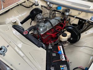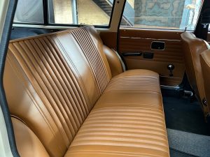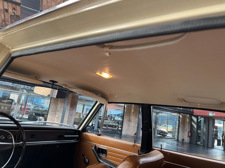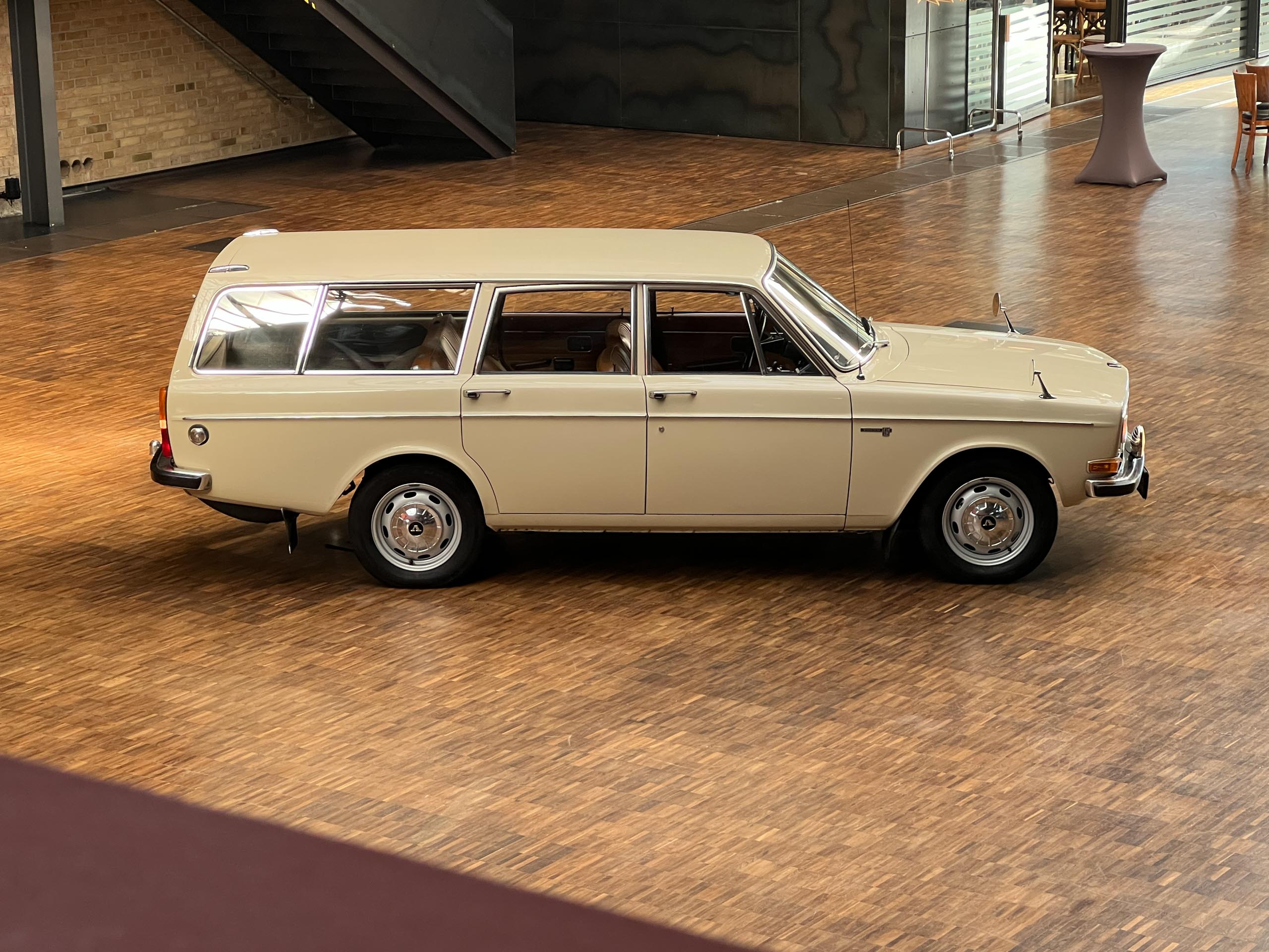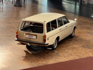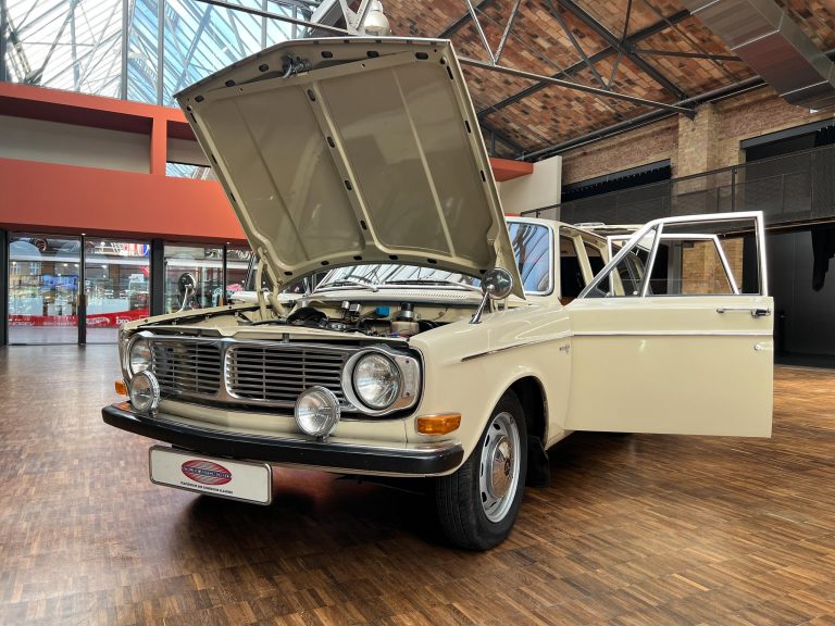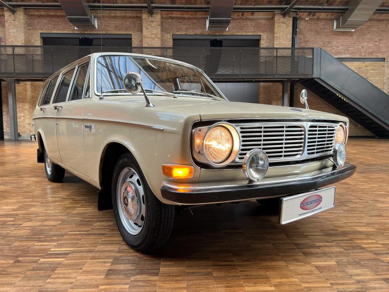 Dieser Volvo 145 Torslanda wurde am 05.07.1968 an einen Herrn in Kvarnsveden, gut 200 Kilometer nördlich von Stockholm, ausgeliefert. Das Garantiebuch ist fast im Neuzustand erhalten. Offensichtlich wurde das Auto von Beginn an sehr wenig gefahren, denn der älteste schwedische „TÜV-Bericht“ von 1992 weist einen Kilometerstand von 61.675 aus. Der letzte schwedische „TÜV-Bericht“ von 1997 weist 69.729 Kilometer aus. 2005 wurde das Auto nach Deutschland verkauft und eine Hohlraum- und Unterbodenkonservierung mit TimeMAX durchgeführt. Das Auto befand sich zu dieser Zeit im völligen Originalzustand, was auch der TimeMAX-Bericht von der Konservierung bestätigt. 2011 wurde das Auto über einen Händler an einen deutschen Bildhauer verkauft, der über ein paar Oldtimer verfügt und diesen Volvo Kombi ab und zu als Transportfahrzeug genutzt hat. Dieser Bildhauer hat bei uns ein anderes Fahrzeug gekauft und uns gebeten, den Volvo 145 für ihn zu vermarkten. Als das Fahrzeug bei uns ankam, staunten wir nicht schlecht, denn das gesamte Auto wirkt völlig authentisch und sehr gut erhalten. Schon die Innenausstattung wirkt wie bei einem sehr gut gepflegten und kaum genutzten Gebrauchtwagen. Ob die Lackierung noch original die vom Werk ist, konnte uns der Besitzer nicht sagen, also haben wir die Lackdicke von durchweg um die 100 Mikrometer gemessen. Das sind Werte, die auf eine Werkslackierung hindeuten, aber wenn man ganz genau hinsieht, stellt man fest, dass zumindest unterhalb der seitlichen Zierleiste nachlackiert wurde. Offenbar sehr dünn und ohne sichtbaren Farbunterschied. Wir haben dann den Motorraum mit Trockeneis strahlen lassen und attestieren auch hier einen sehr guten Originalzustand. Sie haben also mit diesem Auto die Möglichkeit, einen Volvo 145 Torslanda aus dem ersten Baujahr, mit derzeit 75.544 Kilometer Laufleistung im weitgehend originalen Zustand zu erwerben. Die Rückspiegel auf den Kotflügeln vorn, waren übrigens original ab Werk genauso, denn in der Bedienungsanleitung sind sie auch so abgebildet. Die Autolegende – schwedisch Billegende – kann von Ihnen fortgeführt werden.