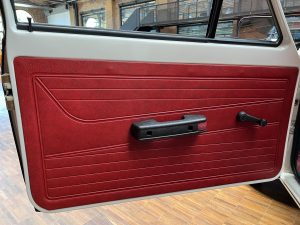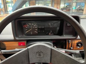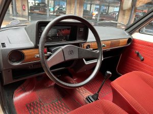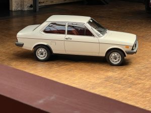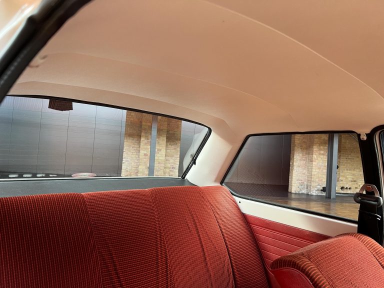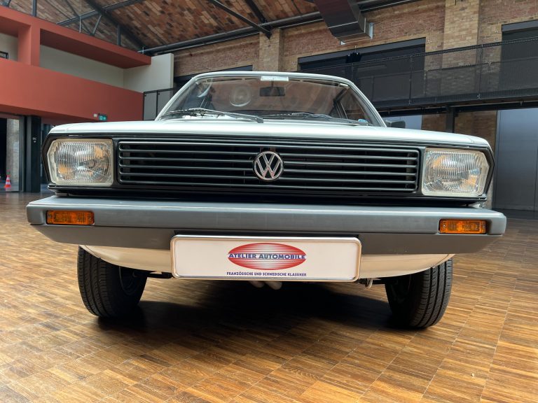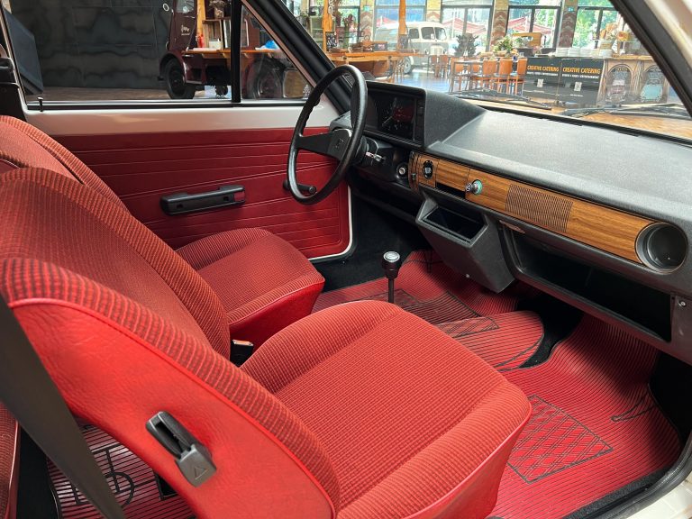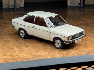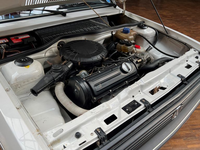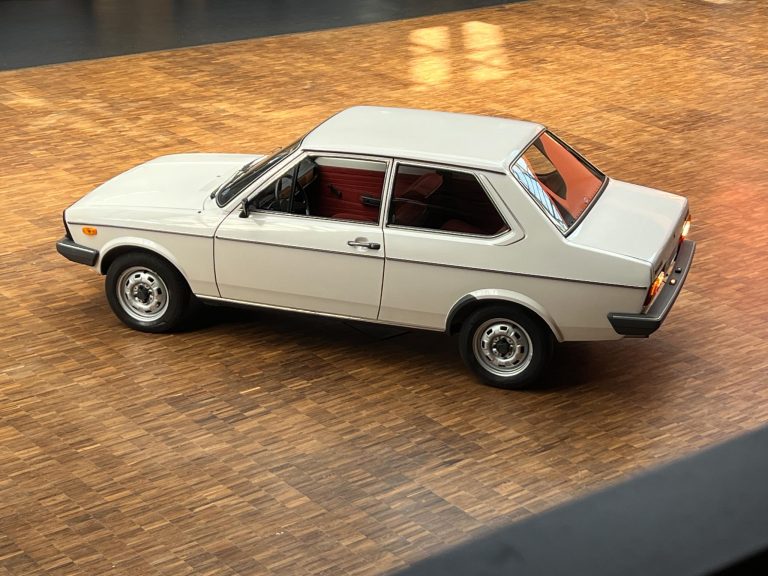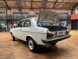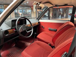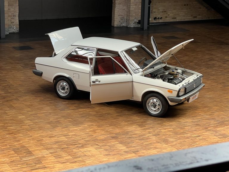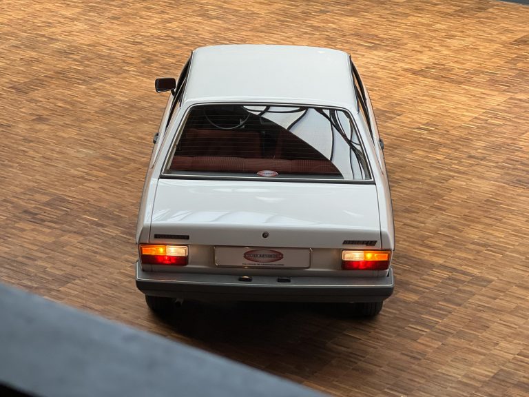 Dieser VW Derby ist durch zwei Presseberichte im Jahr 2021 in der Autobild und der Autobild-Klassik bekannt. Zu diesem Zeitpunkt hatte das Auto erst sensationelle 845 Kilometer Laufleistung hinter sich! Der kleine VW wurde am 16.04.1981 auf einen Herrn in Südtirol in Italien, nennen wir ihn Giuseppe, zugelassen. Giuseppe hatte wohl vor, den Derby gut zu pflegen und lange zu erhalten, denn er ließ ihn vor der Auslieferung gründlich hohlraumkonservieren und überzog die vorderen Sitze mit Schonbezügen. Kurz nachdem er den weißen Wolfsburger mit rotem Interieur erhalten hatte, verstarb Giuseppe offenbar unerwartet. Seine Witwe brachte es nicht über’s Herz, den Derby zu nutzen oder gar zu verkaufen. Ihr Fiat 850 funktionierte immer noch stets zuverlässig und so schlummerte der neue Derby in der Garage vor sich hin. „Schneewittchen“ schlief bis 2019, als ein Oldtimersammler aus Südtirol die kleine Limousine fand und „wachküsste“. Er ließ alle Flüssigkeiten erneuern, die Bremsen überholen, gönnte dem Motor eine behutsame Wiederbelebung, ließ neue Reifen aufziehen und vor allem den Zahnriemen des Motors erneuern. Am 16.09.2021 wurde der VW dann auf seinen zweiten Besitzer angemeldet und dieser meldete sich bei der Autobild, die die beiden Berichte lancierte. Seitdem ist der Wagen bekannt, und als sich 2025 der Besitzer an unseren Geschäftsführer Herrn Kayser wandte, war auch ihm das Auto aus der Presse bekannt. Der zweite Besitzer hat die Laufleistung auf jetzt 1.560 Kilometer fast verdoppelt, ihm ist das Auto aber zu schade, um es in seiner Sammlung weiter schlummern zu lassen. Also hat er sich an uns gewendet und uns den sagenhaften Derby per Spedition anliefern lassen, um ihn in Liebhaberhände abzugeben.