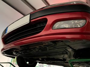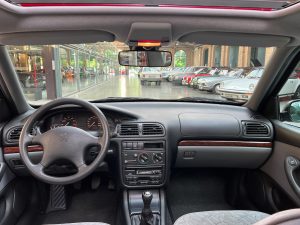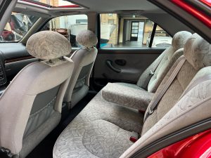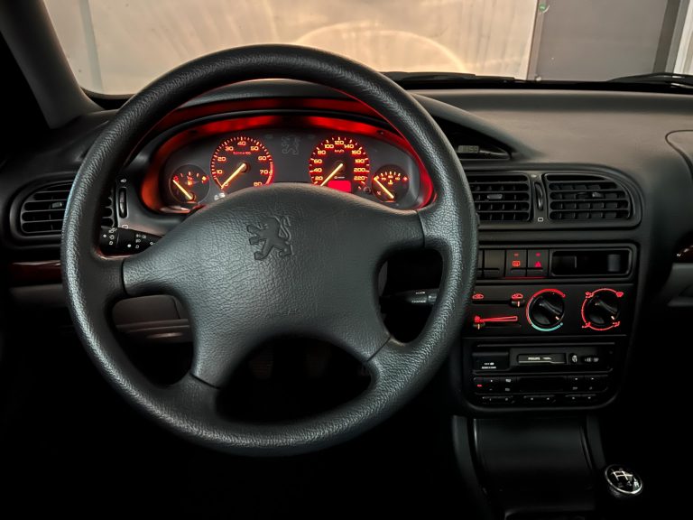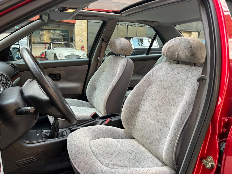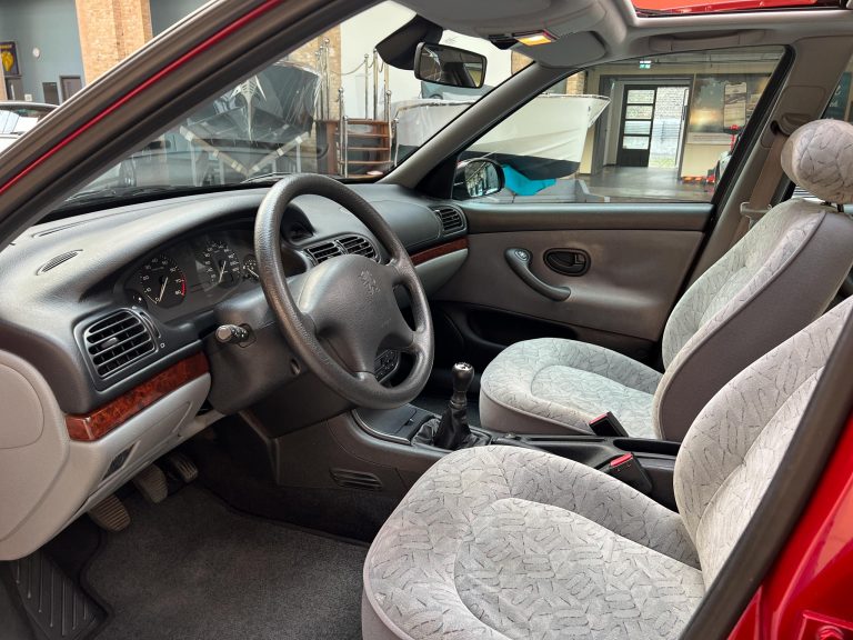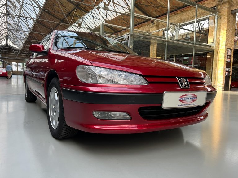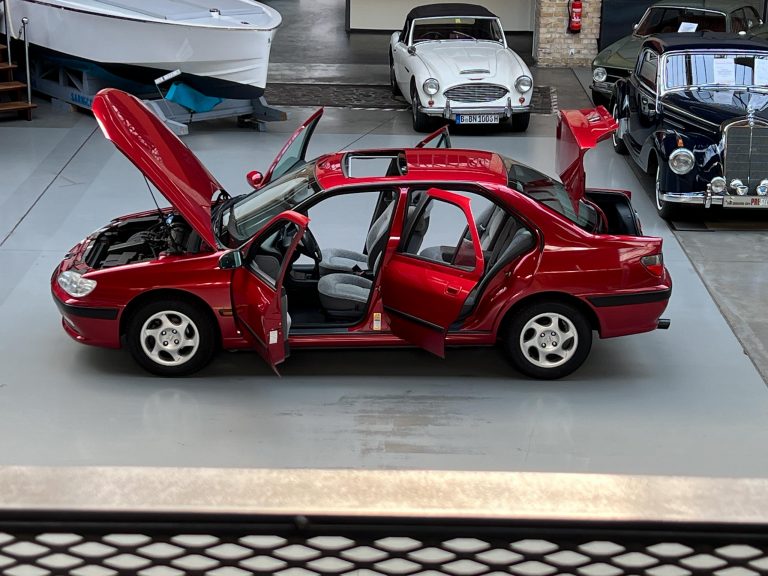 Zu diesem 406 erhielten wir den Anruf des Sohnes des Erstbesitzers, der unsere Internetseite seit Langem beobachtete. Der 1939 geborene Erstbesitzer kaufte sich im Februar 1998 diesen 406 als Vorführwagen des Peugeot-Markenhändlers Fenner in Weilheim in Oberbayern. Er leistete sich den neuen Peugeot zu seiner Rente und hegte und pflegte ihn seit dem ersten Tag. Nach seiner Aussage fuhr er mit dem Auto nie im Regen oder gar Schnee. Das Auto hat also „nie Salz gesehen“. Jetzt, mit 85 Jahren, hat der Erstbesitzer das Autofahren aufgegeben und möchte, dass sein geliebter Peugeot in gute Hände kommt. Also hatte er seinen Sohn gebeten, mit uns Kontakt aufzunehmen, und wir hatten den Wagen dann mit unserem Abschlepper in Weilheim abgeholt. Als wir den Wagen aufluden, wollte der ältere Herr nicht dabei sein, denn der Abschied ging ihm zu nahe. Das Wartungsheft des Autos ist vorbildlich geführt und jeder fällige Service ist lückenlos dokumentiert. Der Zahnriemen wurde bei Kilometerstand 119.478 erneuert und der letzte Service wurde bei Kilometerstand 124.940 durchgeführt. Bis auf ein paar kleine Kratzer an der vorderen Stoßstange und am Radlauf hinten rechts – das Einschätzungsvermögen der Fahrzeuggröße wurde für den Herrn immer mehr zur Herausforderung – wirkt der Wagen wie ein Jahreswagen. Hineinsetzen und sich gut fühlen – Sentir Bien.