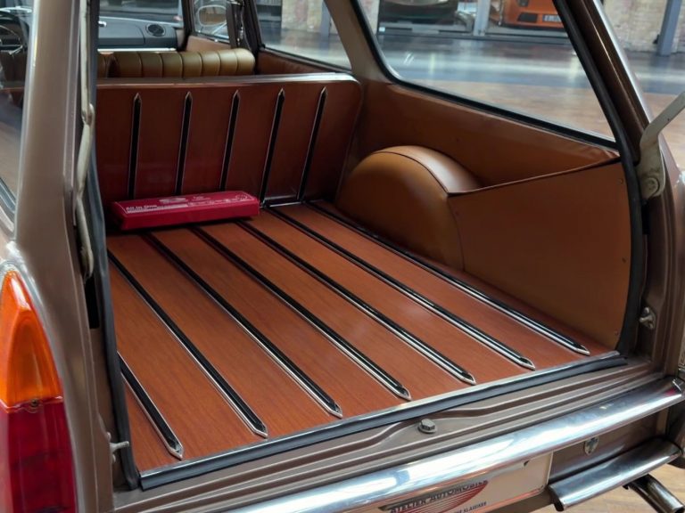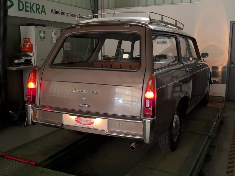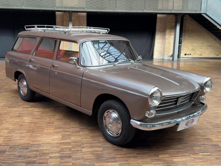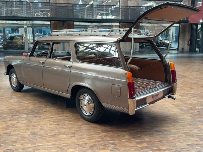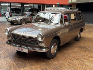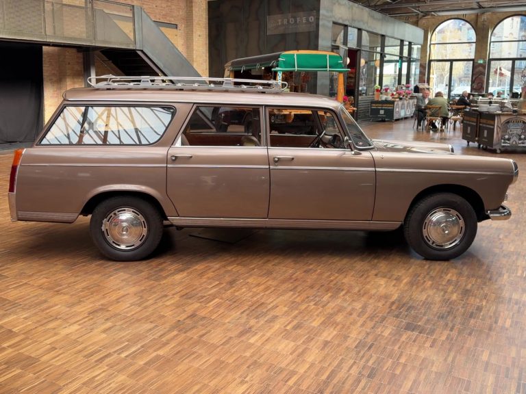 La Peugeot 404, dessinée par Pininfarina, est un exemple typique du style trapézoïdal des années 1960, un design que l’on retrouve également sur la Mercedes 190, l’Opel Rekord P2, l’Austin Cambridge, la DKW Junior, la Fiat 2300, la Sachsenring Trabant 601, et bien d’autres. De 1960 à 1978, 2 885 374 exemplaires ont été produits en France, faisant d’elle l’une des voitures les plus vendues du segment des berlines de luxe. C’est précisément ce modèle qui a permis à Peugeot de s’implanter durablement sur le marché allemand. Mais son succès ne s’est pas limité à l’Allemagne ; la voiture est devenue un phénomène mondial, et de nombreux exemplaires circulent encore quotidiennement dans les pays en développement et émergents. Bien que souvent mises à rude épreuve, ces voitures semblent techniquement indestructibles et figurent parmi les véhicules les plus robustes jamais produits par l’industrie automobile. De plus, elles offrent un confort de conduite exceptionnel, une excellente tenue de route et une suspension confortable. La direction est précise, le freinage excellent, l’espace intérieur généreux et la visibilité superbe. La 404 est sans conteste l’une des voitures les mieux équilibrées jamais construites. Les breaks, presque imposants, bénéficient d’un empattement allongé de 190 mm. Au total, 393 732 exemplaires de toutes les versions break (Commerciale, Break et Familiale) ont été produits. La plupart étaient équipés de moteurs diesel, mais les moteurs essence, d’une grande douceur de fonctionnement, sont également d’une robustesse exceptionnelle. À l’époque, il n’était pas rare de voir des kilométrages dépassant les 500 000 km. Les élégants Superluxe Break constituent la version la plus rare et, avec leurs somptueuses finitions chromées, leur peinture métallisée, leur sellerie cuir et leur coffre aménagé comme un voilier, ils étaient considérés comme des breaks de luxe. Il est regrettable que si peu d’exemplaires en bon état et d’origine aient survécu.