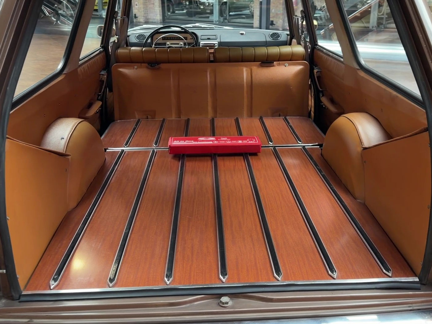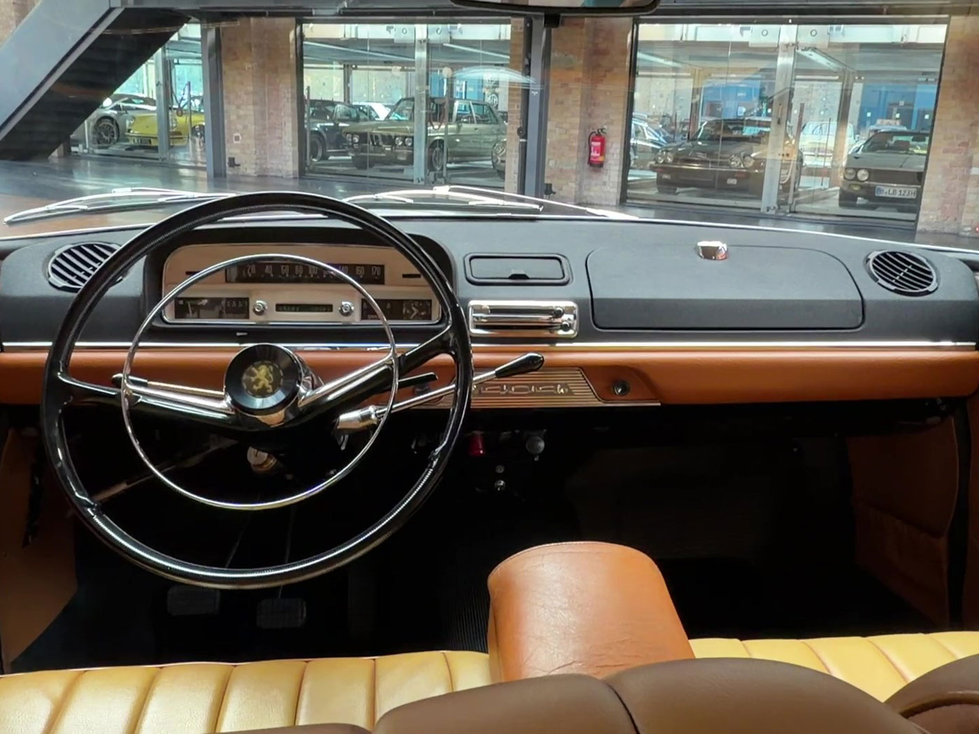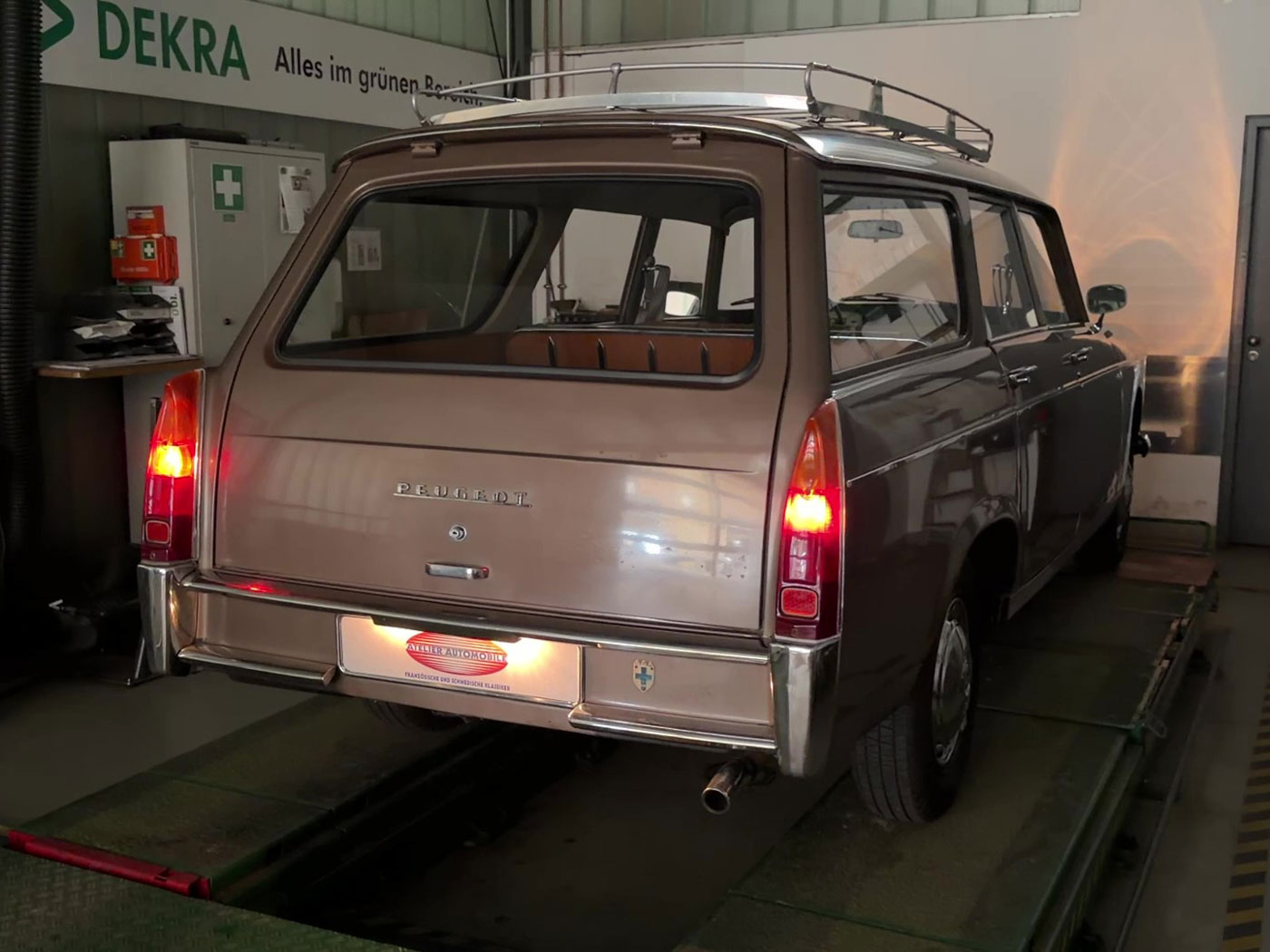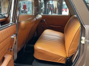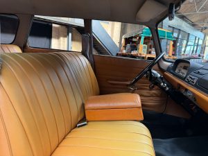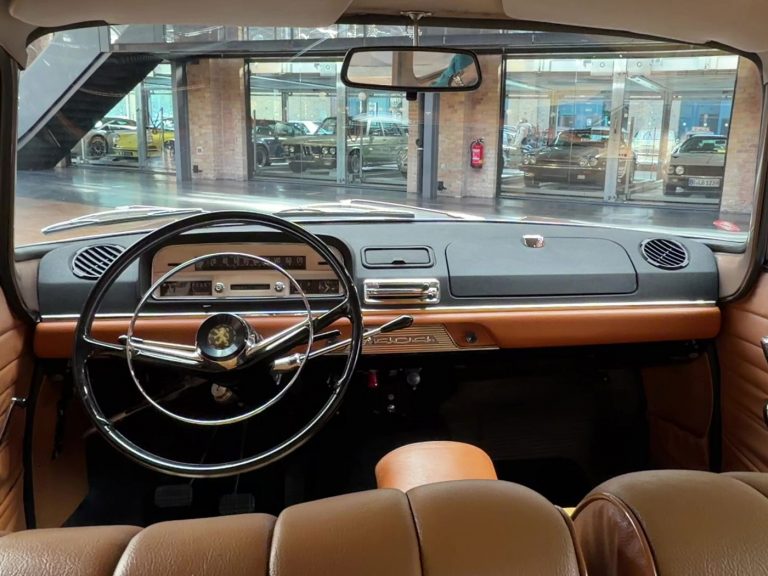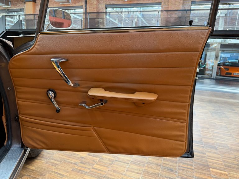 Cette 404 Superluxe Break a été immatriculée pour la première fois en 1965 dans le Vaucluse, près d’Avignon. Il s’agit d’une voiture du dernier millésime avec le compteur de vitesse à ruban classique, un tableau de bord à trois cadrans ronds ayant été introduit peu après. Nous avons acquis ce véhicule assez rare il y a environ huit ans auprès d’un collectionneur de Rhénanie-du-Nord-Westphalie qui réduisait sa collection par manque de place. En 2020, nous avons vendu le break à un Berlinois qui l’a également immatriculé à son nom. La voiture possède donc déjà des papiers d’immatriculation allemands et une certification de véhicule de collection (H). Cependant, ce Berlinois ne l’a pas conduite depuis et la remet aujourd’hui en vente. Nous avons déjà réglé les problèmes liés au stockage, comme le remplacement des cylindres de freins. Le véhicule est resté dans un état d’origine quasiment intact. Nous pensons même que la peinture est d’origine, à l’exception de l’aile avant gauche. Nous en sommes convaincus car aucune retouche de peinture n’est visible sur cette aile. Toutes les autres parties n’ont certainement pas été repeintes. L’intérieur est très bien conservé et le magnifique revêtement du coffre ne présente quasiment aucune usure. Les barres de toit d’origine sont particulièrement recherchées par les connaisseurs. Il s’agit d’un break classique d’une époque où, en Allemagne, les breaks étaient encore considérés comme des véhicules utilitaires.
