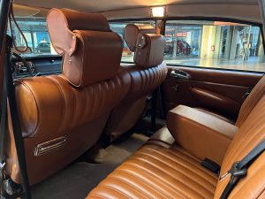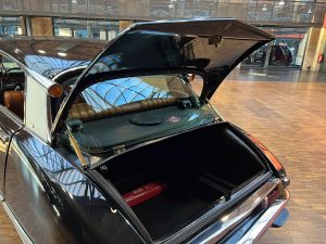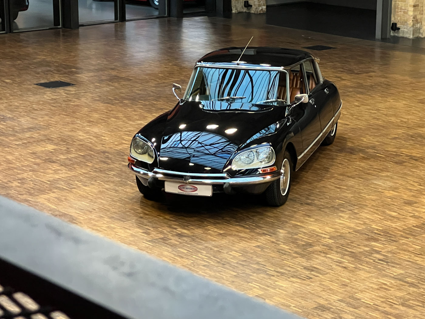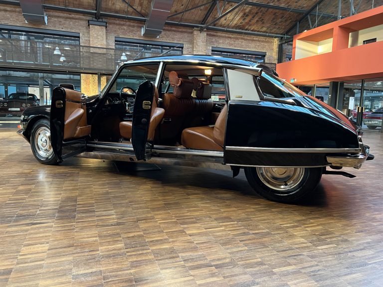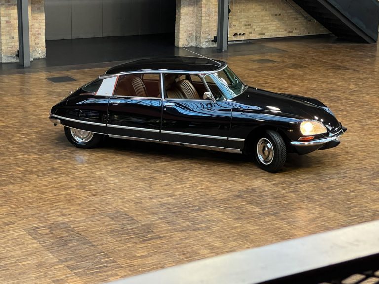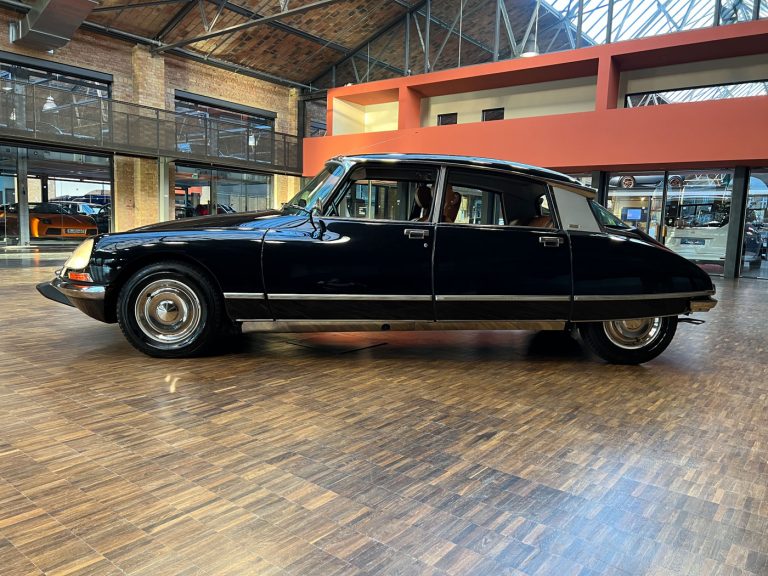 Cette DS 23 Pallas représente la DS idéale pour de nombreux passionnés actuels. Il s’agit d’une DS Pallas raffinée, dotée du plus gros moteur, mais sans injection et avec une boîte de vitesses manuelle à 5 rapports au lieu de la semi-automatique. Avec son intérieur en cuir exquis et ses vitres teintées, elle possède tous les atouts d’une DS, sans les options susceptibles d’engendrer des coûts d’entretien élevés. Pour une utilisation optimale dans la circulation actuelle, quatre ceintures de sécurité rétractables, des appuie-tête et des sièges avant chauffants ont été ajoutés. L’autoradio d’époque est également compatible avec les supports numériques modernes. Cette voiture a été commandée par un particulier du Bade-Wurtemberg pour une restauration sur mesure confiée au spécialiste DS Dirk Sassen à Düsseldorf. Nous connaissons très bien l’entreprise Sassen et lui devons une grande partie de notre expertise en Citroën DS, acquise au cours des vingt dernières années. Nous tenons donc à remercier chaleureusement toute l’équipe Sassen. La restauration de cette voiture a duré plusieurs années et s’est achevée il y a près de quatre ans. Le propriétaire a déménagé du Bade-Wurtemberg à Potsdam en 2024, et nous avons ensuite vendu la voiture à un client berlinois. En raison de la grave maladie de son épouse, ce dernier ne peut ni ne souhaite s’occuper de la voiture pour le moment. C’est pourquoi nous sommes heureux de proposer à nouveau cette magnifique DS. Ce client berlinois, lui-même médecin, n’a parcouru que 177 kilomètres à son bord. Nous souhaitons à son épouse un prompt rétablissement ! Cette DS demeure une DS idéale – Déesse Idéale.