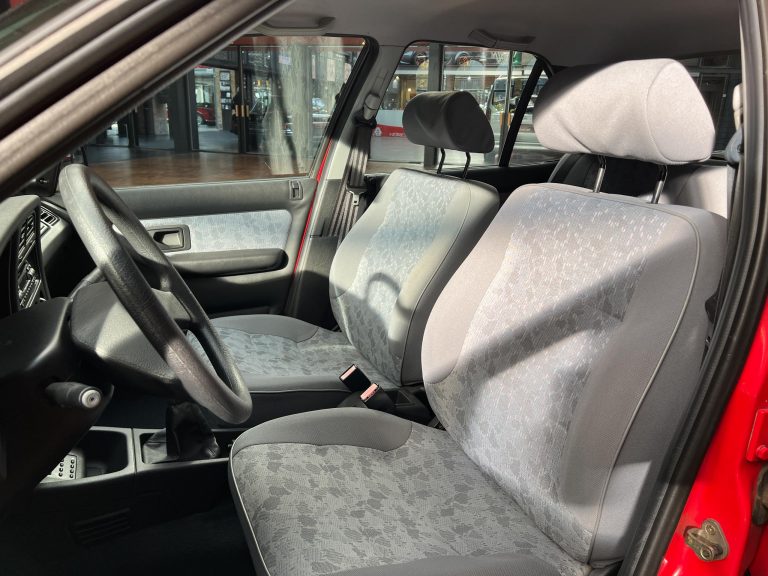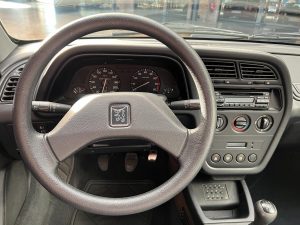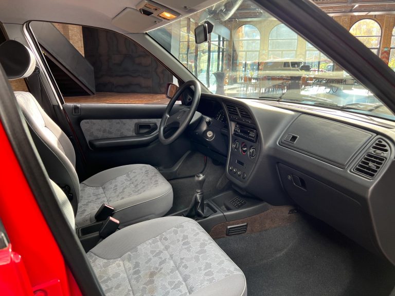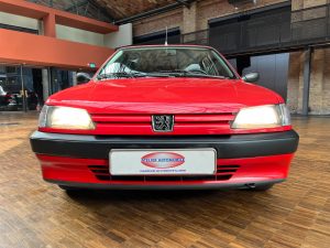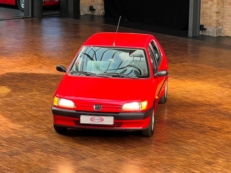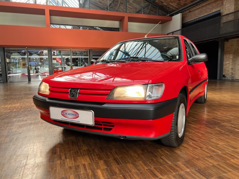 Cette Peugeot 306 XR, équipée de direction assistée et de vitres avant électriques, a été immatriculée au nom d’une femme à Berlin-Wilmersdorf le 29 novembre 1994. Cette habitante berlinoise n’utilisait sa voiture qu’occasionnellement pour de courts trajets, mais la faisait entretenir régulièrement chez un concessionnaire Peugeot. Au printemps 2025, des pneus toutes saisons Goodyear Vector neufs ont été montés. En septembre 2025, le contrôle technique obligatoire était de nouveau à effectuer et les soufflets de cardan, les silentblocs de barre stabilisatrice et le pare-brise ont été identifiés comme nécessitant des réparations. Bien que le pare-brise ne présentât aucun impact de gravillons, le film feuilleté absorbait l’humidité, ce qui provoquait un voile sur les bords. La propriétaire envisageant déjà de ne plus conduire, elle ne souhaitait pas investir davantage d’argent dans ces réparations. Elle nous a contactés et notre directeur général a été tellement impressionné par l’excellent état de la Peugeot, qui n’avait parcouru que 21 858 kilomètres, qu’il a ajouté ce véhicule de collection à notre catalogue. Cette voiture de collection, dont l’historique est entièrement documenté et qui peut désormais être immatriculée comme véhicule de collection, a fait l’objet d’une restauration complète, d’un nouveau pare-brise et recherche un passionné.